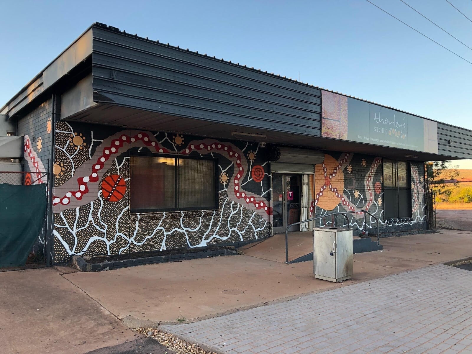 Bianca’s paintings have since been the inspiration for two jewellery ranges, appeared on home décor, and have been purchased to create scarves and ties for a mining company. In 2019, she worked alongside other local artists and young people to paint a mural for NAIDOC Week onto the store she owns with her husband in Wyndham.